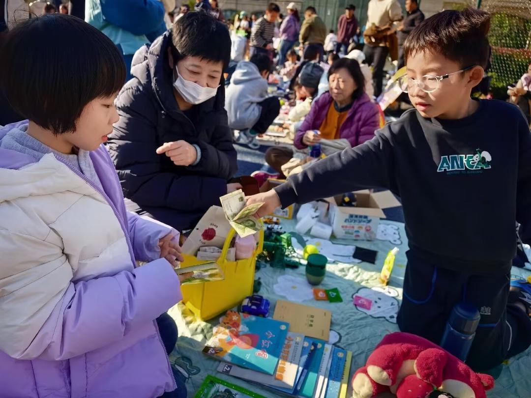 活动当天,校园内热闹非凡,一个个“小店铺”整齐排列,闲置物品琳琅满目。学生们化身“小店CEO”,独立管理货物与“资金”:有的主动向过往同学推销商品,清晰介绍物品用途与特色;有的耐心与顾客协商价格,灵活调整交易方式;还有的学生互相协作,轮流照看摊位、分工吆喝,展现出良好的团队意识。交易过程中,大家坚守诚信原则,如实告知物品状况,不哄抬价格;遇到同学想交换物品却找不到心仪商品时,主动帮忙牵线搭桥,让尊重与互助的暖流在市场中传递。
