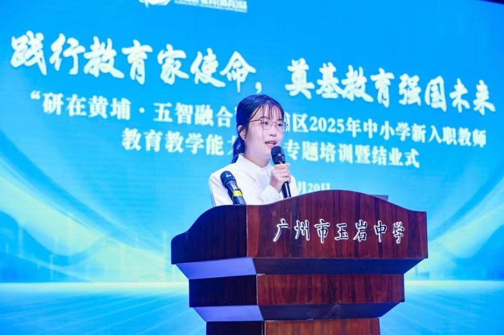 “今天,新教师培训画上圆满的句号,但也是大家从教生涯的开始。”黄埔区教育局党组成员、副局长罗玉在结业典礼上说。她希望新入职教师牢记教育初心,扛稳育人使命,坚定立德树人的理想信念,做为人师表的好老师。