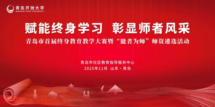 近日,由青岛市社区教育指导服务中心主办的青岛市首届终身教育教学大赛暨“能者为师”师资遴选活动总决赛在青岛开放大学顺利举行。作为我市首次面向终身教育领域举办的专项教学竞赛,本次活动不仅为各类教育人才搭建了展示交流的舞台,也为构建泛在可及的终身教育体系提供了重要支撑。