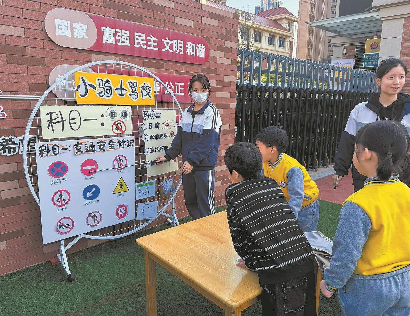 孩子们在“快乐驿站”主题区上岗前先进行“驾校培训”(洪娜娜 摄)