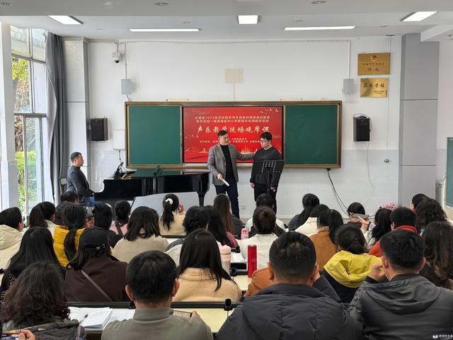 合唱指挥李颖老师则以“合唱排练与团队管理”为主题,在学校演播厅呈现了一堂生动的实践课。她突破单一技能训练,将团队协作、声部融合与文化传递有机结合,阐释了合唱艺术在凝聚集体情感、传承民族文化中的独特作用。她的分享为基层美育教学提供了可复制、可推广的鲜活经验。