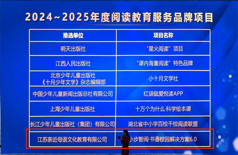本届峰会聚焦“数智赋能融合共生”主题,吸引了教育、出版、科技三大领域近 600 位代表参会。“小步智阅”作为亲近母语深耕阅读教育领域多年,结合数智化技术与教育实践经验研发的书香校园解决方案,其 6.0 版本凭借专业实力在本次峰会上荣获“ 2024-2025 年度阅读教育服务项目”奖项,得到行业权威认可。