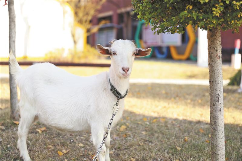 校园中的山羊成了学生们最喜爱的“辅导员”。