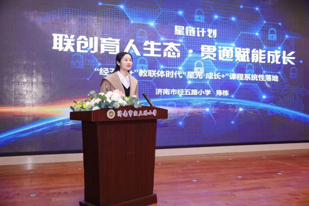 蓝图绘就,关键在行动。经五路小学学生发展部主任陈栋正式发布了以“联创育人生态·贯通赋能成长”为内核的“星链计划”。作为“教联体”的落地引擎,该计划旨在通过课程共创、资源互通、项目共研,构建纵横交织的赋能网络。