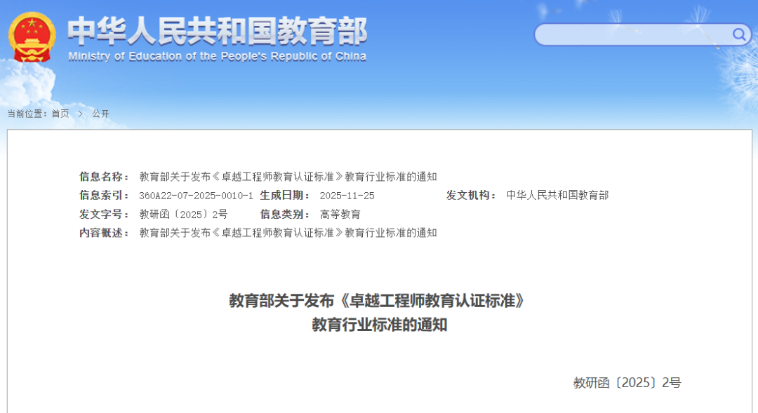 早在今年 7 月,教育部已透露该标准将在年内发布,并启动国家卓越工程师学院的认证工作。如今标准落地,改革方向愈发清晰:以产业需求为牵引、以实践能力为核心、以产教深度融合为路径,面向 2030 年构建中国特色卓越工程师自主培养体系。这一体系不仅关乎人才,更关乎现代化产业、科技创新和国家竞争力的未来。