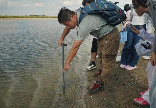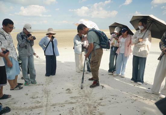 在冠头岭,两名教师带领同学们沿着海岸探索滨海山地的岩石分布,观察学习岩石分类、特征构造等,学习海岸生态保护的重要意义。大家以小组为单位开展“生态教育教学设计”实践,结合冠头岭的自然景观与生态资源,构思户外教学活动方案,锻炼了将自然场景转化为教学资源的实践能力,为未来开展户外实践教学奠定了坚实基础。
