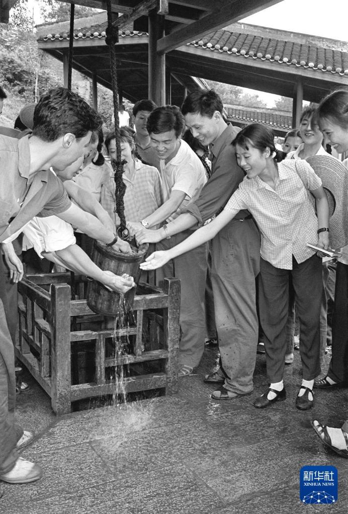 1974年,中国舞剧团的文艺工作者在湖南第一师范学院,参观冷水井(资料照片)。新华社记者 孙忠靖 摄