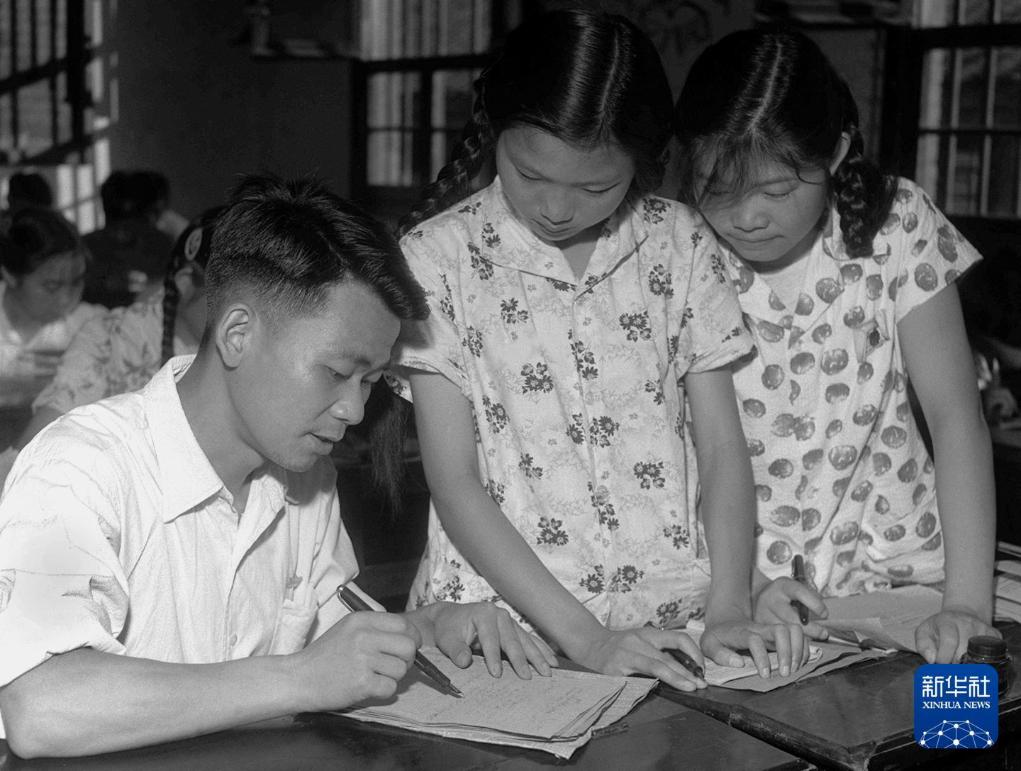 二十世纪六十年代,湖南第一师范学院的数学老师在辅导学生做作业(资料照片)。 新华社记者 龙治安 摄