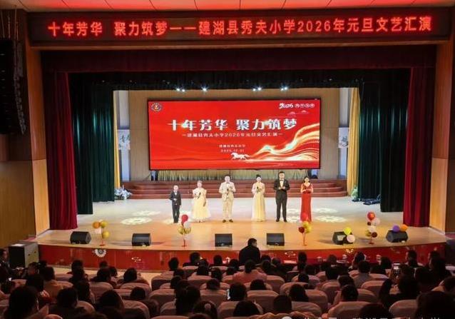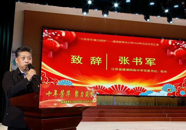 在盐城市建湖县的一个普通小镇上,有一所小学叫秀夫小学,那里孩子们的生活总是充满了活力和温暖。十二月底的一天,学校剧场里挤满了人,大家从四面八方赶来,老师带着家属,家长拉着孩子,还有学生们兴奋地互相打招呼。领导们也来了,像建湖高级中学的张书军校长,还有县教育局的几位负责人,大家坐在一起,脸上都带着笑意。这场元旦联欢会,就这样在热热闹闹的气氛中拉开了帷幕。