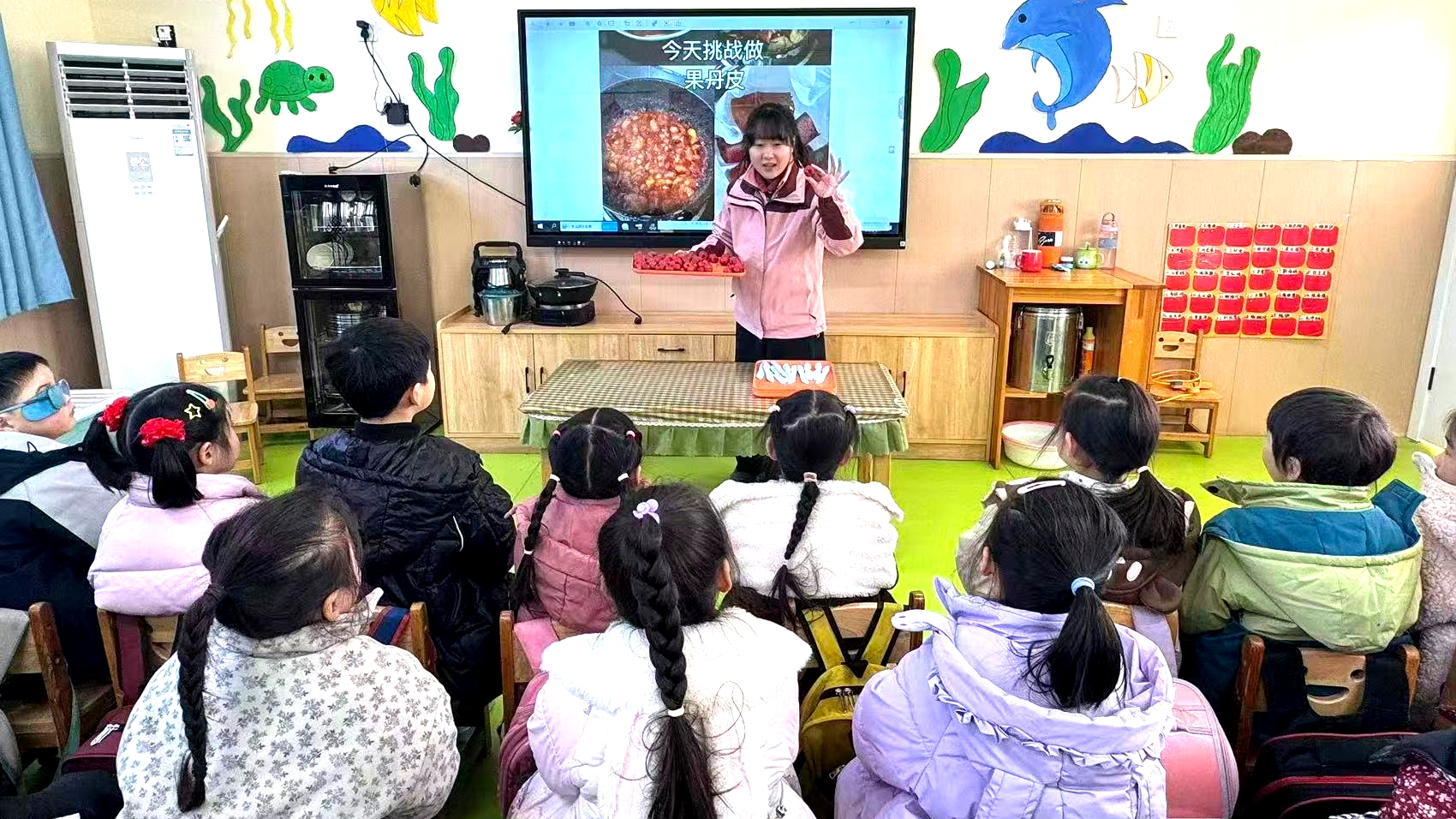 活动中,教师通过生动动画、实物观察与多感官互动,引导幼儿全面认识山楂——从外形、触感、气味到生长环境,构建起对食物的立体认知。各班级还依据年龄特点,设计了差异化的实践课程,让孩子们在安全指导下一展身手。