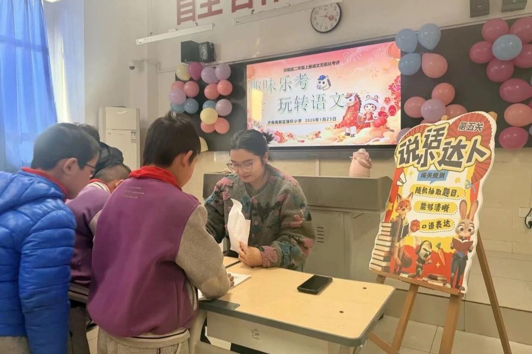 为深入贯彻“双减”政策,落实新课程评价改革要求,打破传统笔试枯燥壁垒,让学生们在趣味体验中巩固知识、收获自信,近日,济南高新区稼轩小学一二年级开展“萌马闯学海,乐考伴成长”无纸化期末测评活动。活动以“玩中学、做中学”为核心,融合语数两大基础学科,通过多环节趣味闯关完成学业测评,切实实现“以考促学、以乐润心”的育人目标。