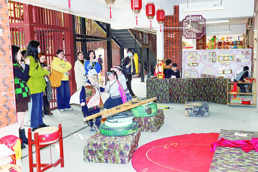 19日上午,幼儿园开展开放日活动,省内外教育同仁实地观摩早操展示、班级主题活动、专题案例分享及课程场景,沉浸式体验在地文化课程实践成果与儿童在场的学习样态。