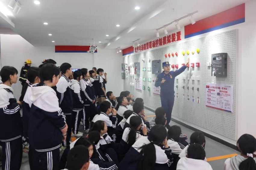现场,“蓝老师”们化身科普达人,先以趣味问答开场,结合校园火灾案例,通俗讲解消防队伍的使命与担当,打破大家对“火焰蓝”的距离感。在火灾自动报警模拟装置前,他们现场触发“火情”,演示系统报警、设施启动全过程,把抽象的消防知识变成直观画面,让同学们快速理解其作用。