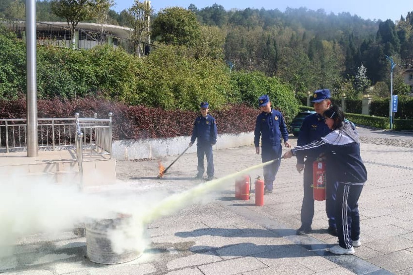户外实操环节,“蓝老师”拆解干粉灭火器“提、拔、握、压”四步用法,详细强调使用注意事项。轮到同学们实操时,大家既紧张又兴奋,严格按照步骤操作,成功扑灭模拟火源后,脸上满是自豪,纷纷表示不仅学会了灭火器使用方法,更增强了面对火灾的底气。
