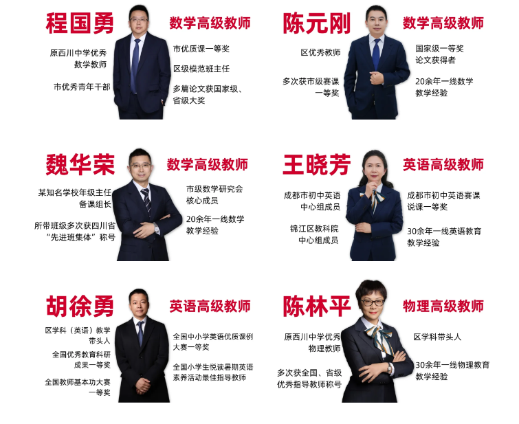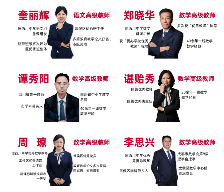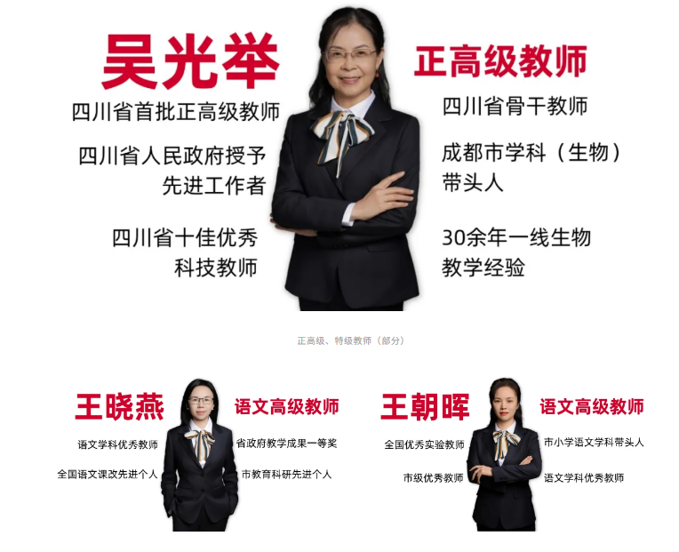名师是立校之本,良师是成长之基。学校组建了一支结构合理、经验丰富、师德高尚、业务精湛的专业化师资团队。团队融入原西川中学管理力量,吸引原西川部分优秀教师加入,其中骨干教师、学科带头人、优秀班主任占比突出,更有资深教育专家、特级教师领衔教研、把关教学。学校建立常态化教研培训、师徒结对机制,让教师始终保持专业活力与教育热情,用扎实学识传道授业,用仁爱之心温暖童心,做学生成长路上的引路人与陪伴者。
