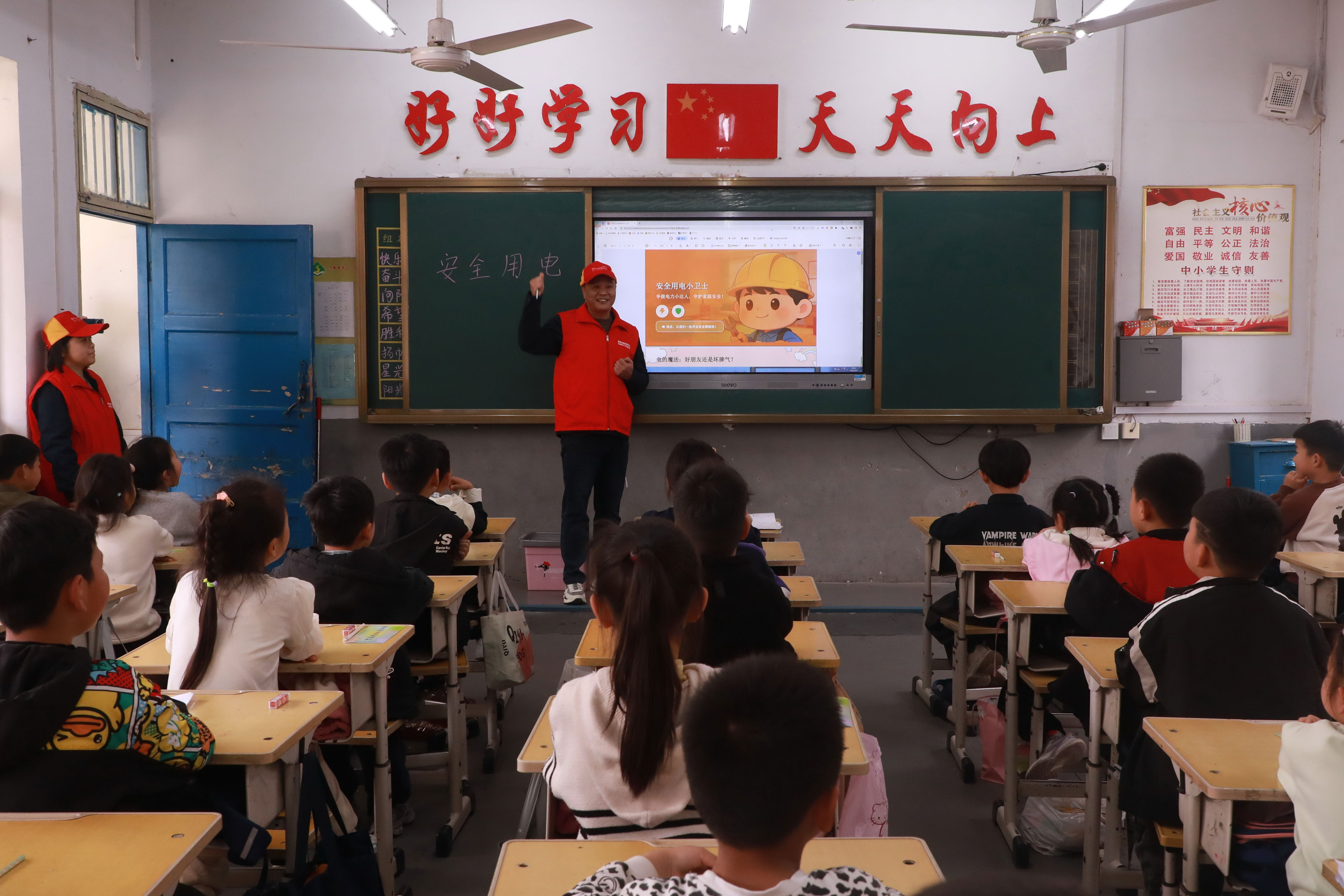 为进一步提升小学生安全用电意识和自我防护能力,切实筑牢校园用电安全防线。4月9日,国网汝南县供电公司组织青年志愿者走进县域第三小学,开展“安全用电进校园”主题宣传活动,为一年级一班的同学送上了一堂生动实用的安全用电知识课。