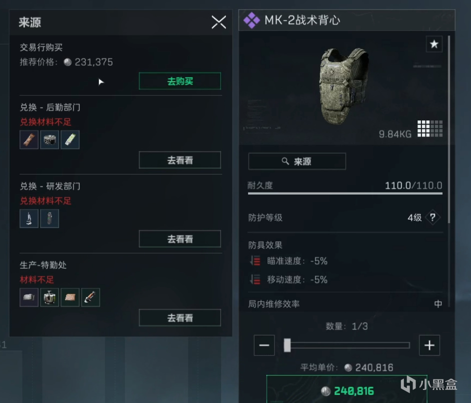 举个例子,现在4级甲MK-2战术背心的战备值是23万哈夫币。假如在官方的一次补货行为中,官方以21万的价格上架了10万份MK-2,而在下次补货之前这个物品被购买了5万次,那么之后这个护甲的售卖价格就会一直低于23万,也就是可以“卡战备”,直到每周一次的战备值更新。而假如还是补了10万份,两次补货之间有50万次购买,那么显然,21万、23万、乃至24万价格的MK-2都会被买完,后来者可能就需要25万哈夫币来购买,也就是我们所说的“装备溢价”。