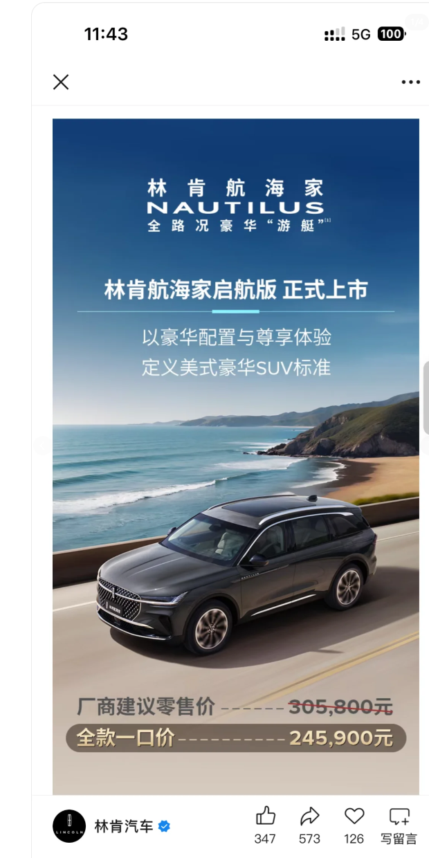 “两年前花34万落地的纯油尊逸版,现在新款启航版一口价才24.59万,还送一堆配置,这不是被背刺了吗?”近期,林肯航海家启航版上市引发轩然大波,社交平台上满是老车主的不满——有人晒出当年39万落地的购车凭证,直言“现在二手价才22万,血亏”;也有人对比配置后发现“宣传的福利藏着套路”,这场“降价风波”,既暴露了豪华车市场价格波动的痛点,也揭开了车企“低价引流”的常见玩法。
