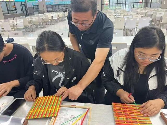 活动现场处处洋溢家的暖意。非遗竹编时,纤细竹丝在师生指尖翻飞,编织出玉兔、圆月等中秋意象,非遗文化与“工匠精神”悄然相融。厨艺区里,老师们亲手示范调馅、擀皮,同学们分工协作,面团在掌心揉出温度,水饺在沸水中翻滚出烟火气。“这是我离家后的第一个双节,和老师、同学一起包的水饺,吃着比家里的更有‘家味’!”来自吉林的新生捧着热乎水饺,满脸真挚地感慨。猜灯谜环节,涵盖传统文化与专业知识的谜题引发阵阵讨论。才艺展演中,歌声与笑声交织成趣;自我介绍时,家乡故事在现场流转。陌生学子在顷刻间打破隔阂,“经英苑”里“一家人”的归属感愈发浓厚。