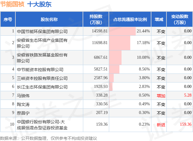 根据节能国祯2025年中报公布的十大股东详情如下: