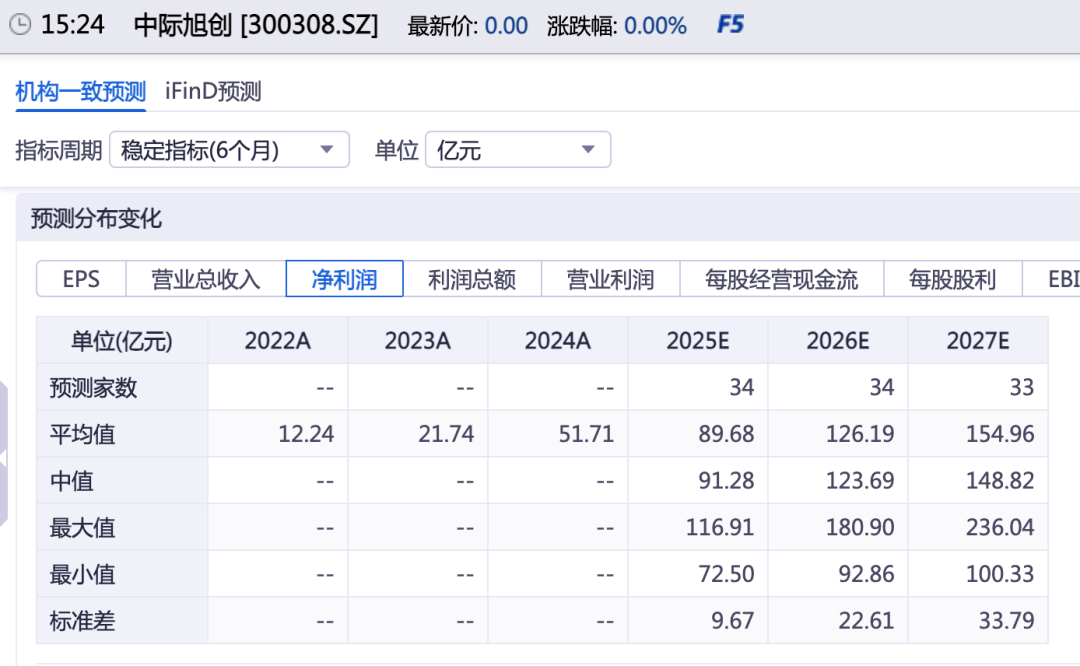 市场机构对中际旭创的预测存在显著分歧。同花顺iFinD数据显示,近6个月33家机构给出的2027年净利润预测值跨度达135.71亿元,最低100.33亿元与最高236.04亿元之间存在巨大差异。这种分歧折射出资本市场对AI驱动下光模块行业前景的不同判断,也预示着企业未来走势仍将充满变数。