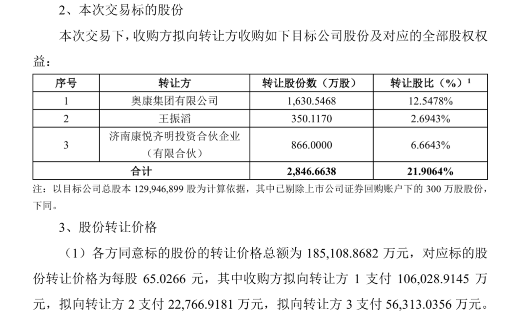 7月20日晚,康华生物公告称,控股股东、实控人王振滔及其一致行动人拟向上海万可欣生物转让21.91%股权,及王振滔剩余8.08%股份的表决权,股权交易总价18.5亿元。交易完成后,上海万可欣将持有康华生物29.99%表决权。