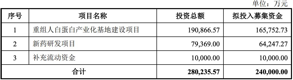 2025年7月,禾元生物上会并顺利通过。招股书(上会稿)显示,禾元生物的募资金额较此前缩水约11亿元。其中,植物源重组人血清白蛋白产业化基地建设项目变更为约16.58亿元,新药研发项目约6.42亿元,补充流动资金为1亿元,均有不同程度的缩减。