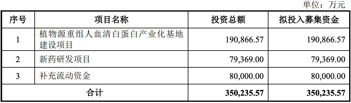 据贝多财经了解,禾元生物于2022年12月递交招股书,报考在科创板上市,禾元生物原计划募资35亿元。其中,19.09亿元将用于植物源重组人血清白蛋白产业化基地建设项目,7.94亿元用于新药研发项目,另外8亿元补充流动资金。