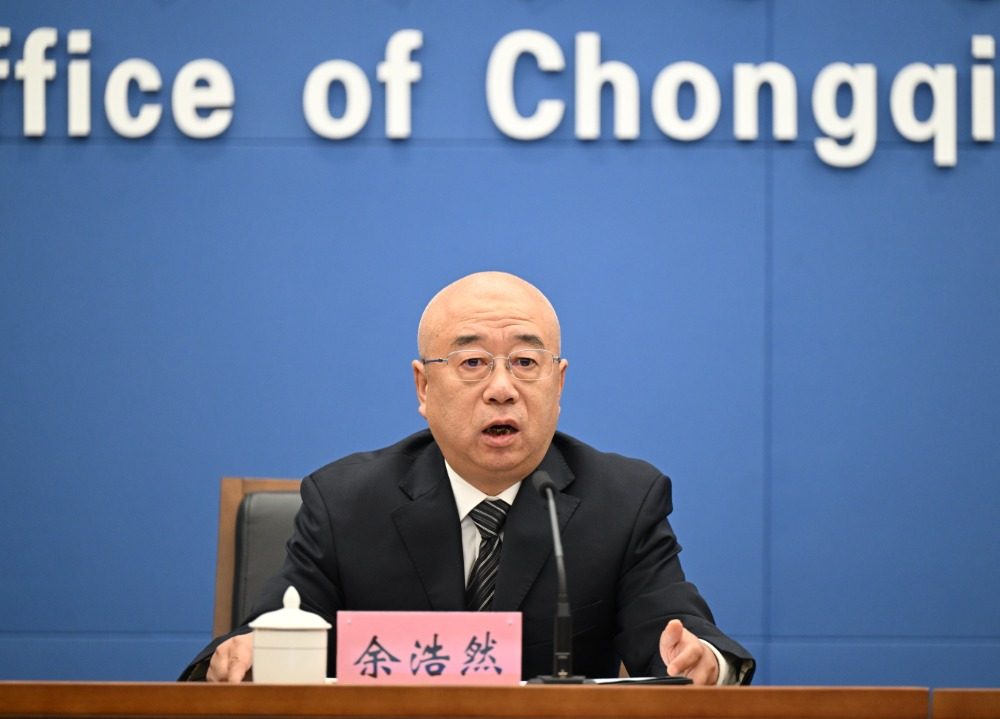 ▲市统计局党组成员、副局长余浩然答记者问。 记者 罗斌 摄/视觉重庆