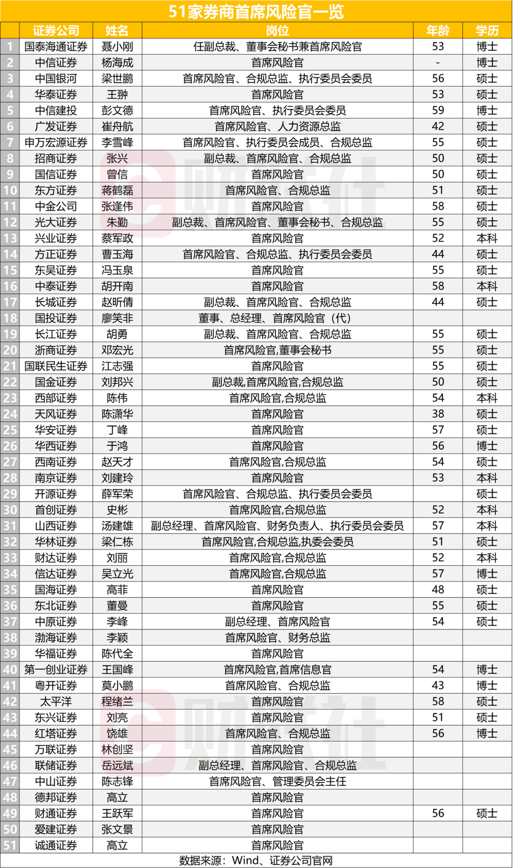 从年内新履职的券商首席风险官来看,多数新任者均有在多家券商任职的经历,且不少人同时具备合规管理领域的实战经验。若将观察周期进一步拉长,从全行业首席风险官的过往职业路径分析,多家券商的首席风险官曾有监管机构从业背景。