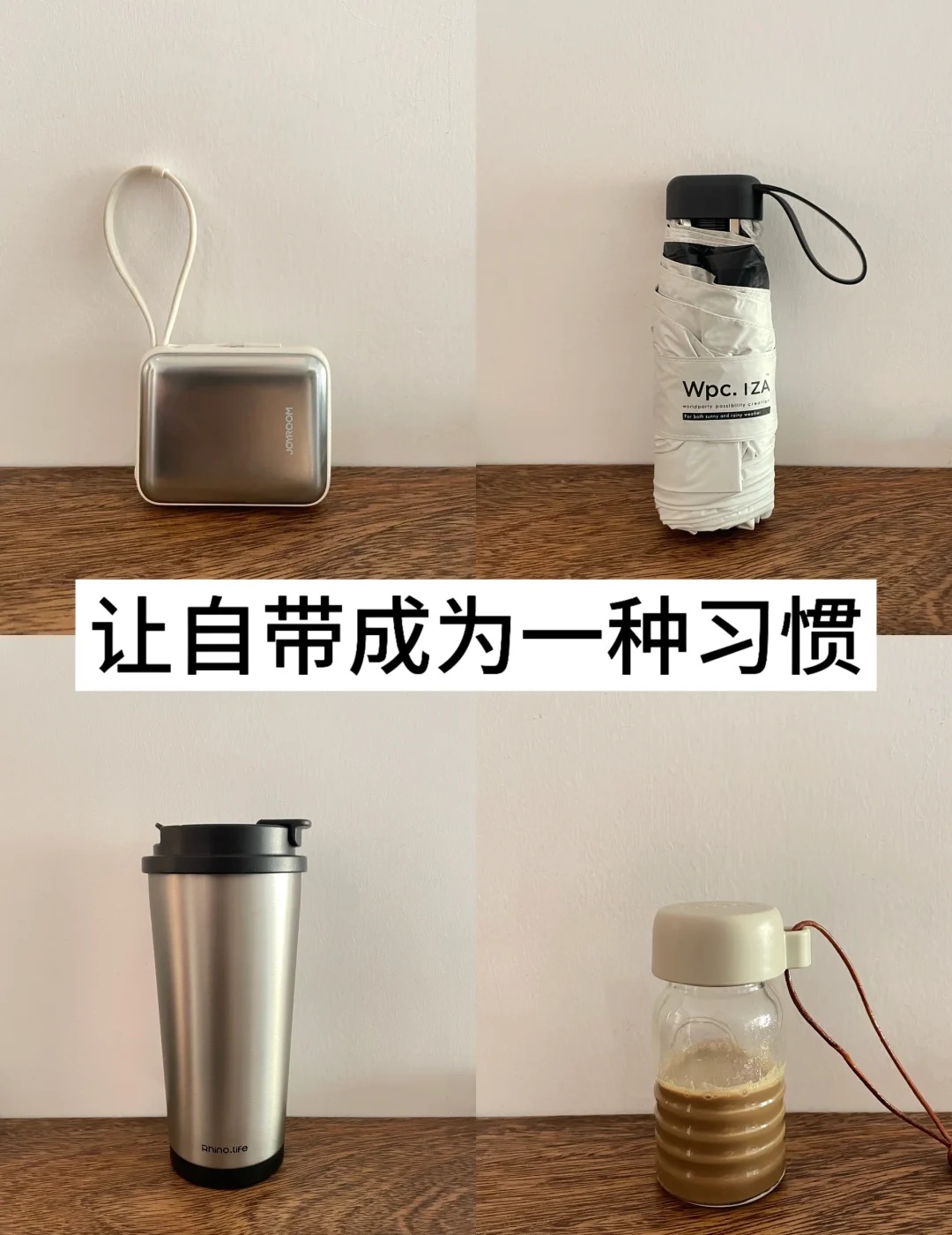 出门带好水杯,这样渴了就不用花钱买水了,外面买水价格不便宜,一杯奶茶十多块钱,带好充电宝,就不用到处花钱充电了。