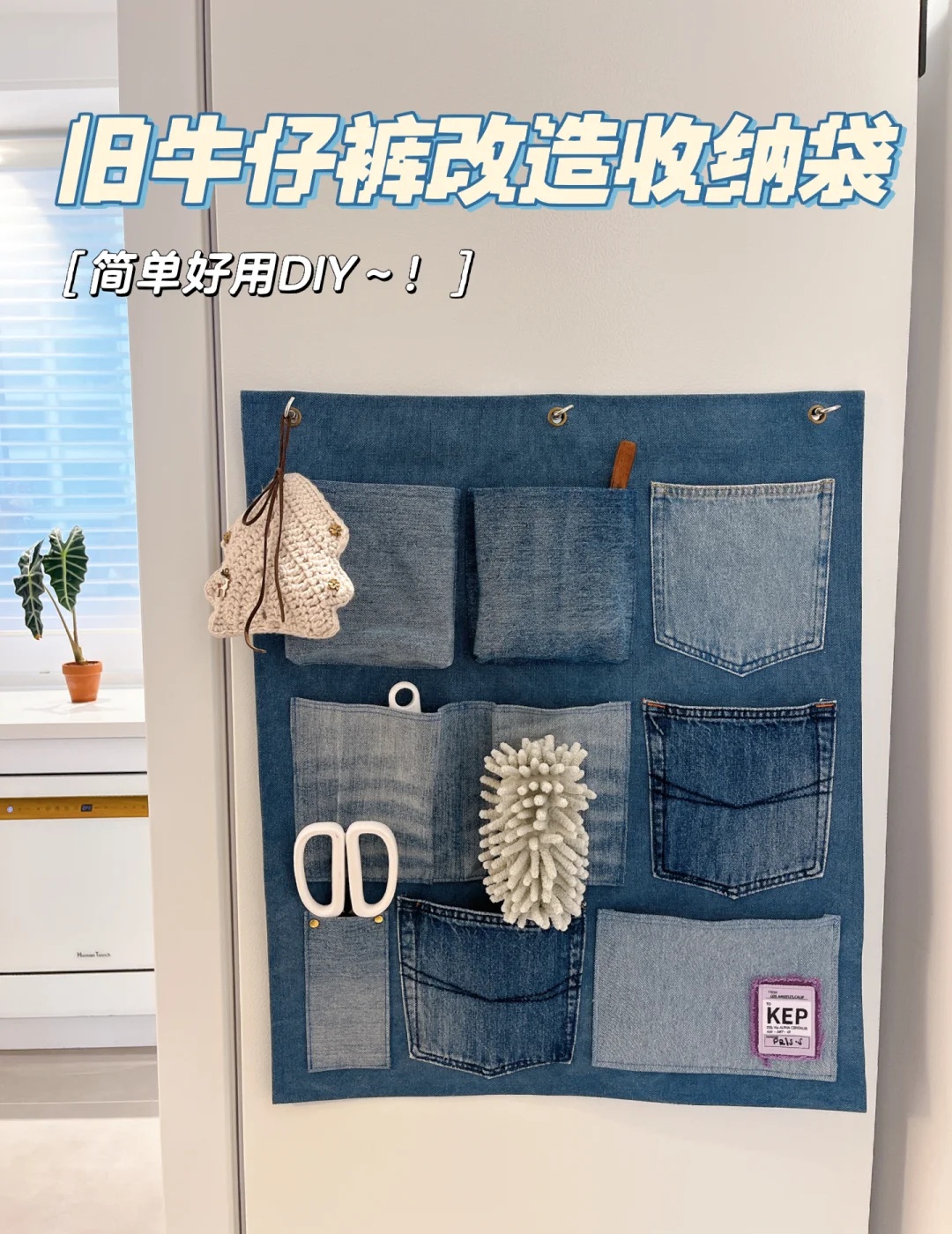 家里不穿的牛仔裤,我改造成了收纳袋、地垫,还有瓶瓶罐罐装杂粮,面条,省钱还实用。