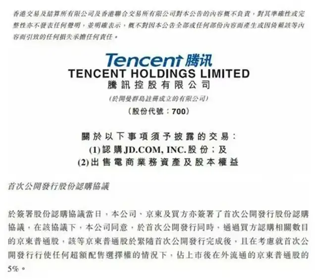 作为回报,当年京东向腾讯发行一定数量的A股,对价最高可达2.2亿美元。