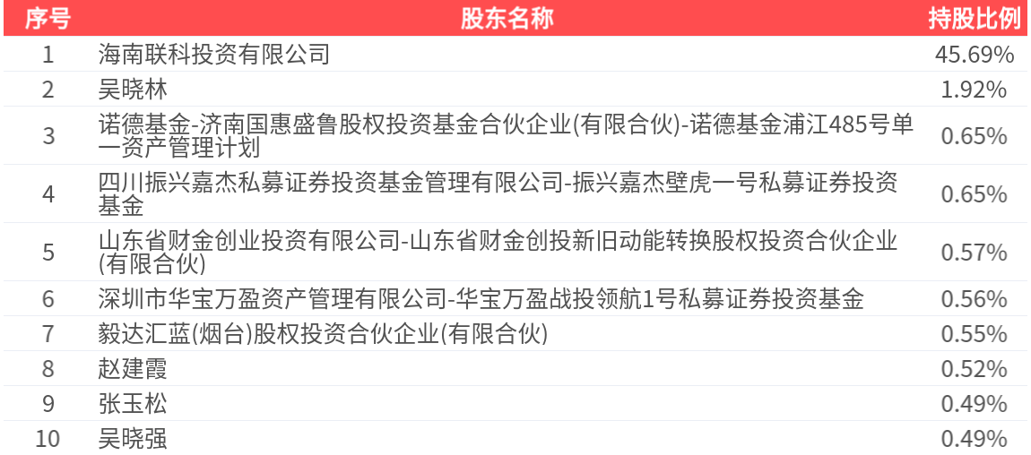 公司股东户数为1.73万户,前十大股东持股数量为1.13亿股,占总股本比例为52.10%,前十大股东持股情况如下:
