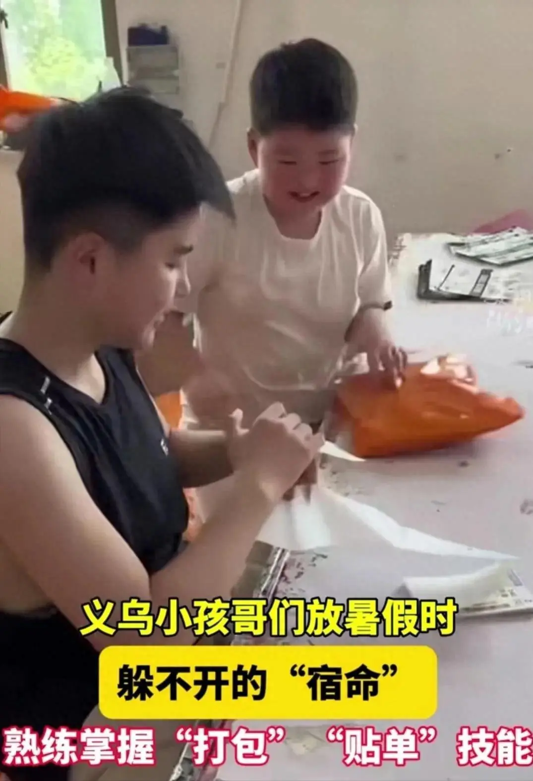 浙江孩子的成长轨迹往往与家庭生意紧密相连,他们早早就开始接触实际工作:贴标签、打包快递、操作电商平台。