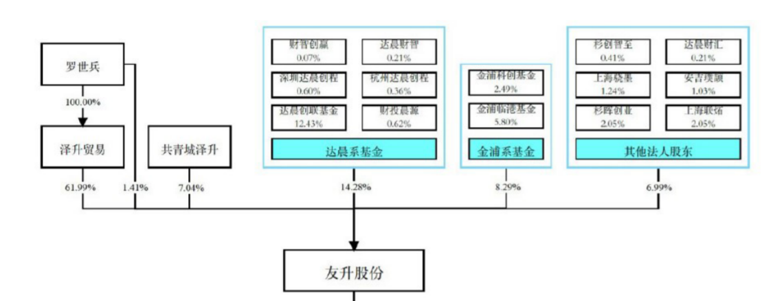 股权方面,罗世兵及其配偶金丽燕为友升股份的实际控制人,两人合计控制友升股份70.44%的股份。