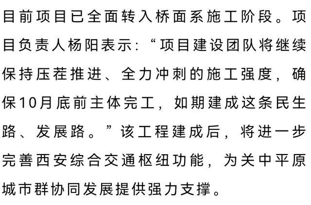 10月7日,西安至兴平高速公路改扩建工程的关键控制性工程——能源金贸高架桥实现全幅贯通。这一重要节点标志着项目正式突破核心建设瓶颈,为全线按期通车奠定坚实基础。
