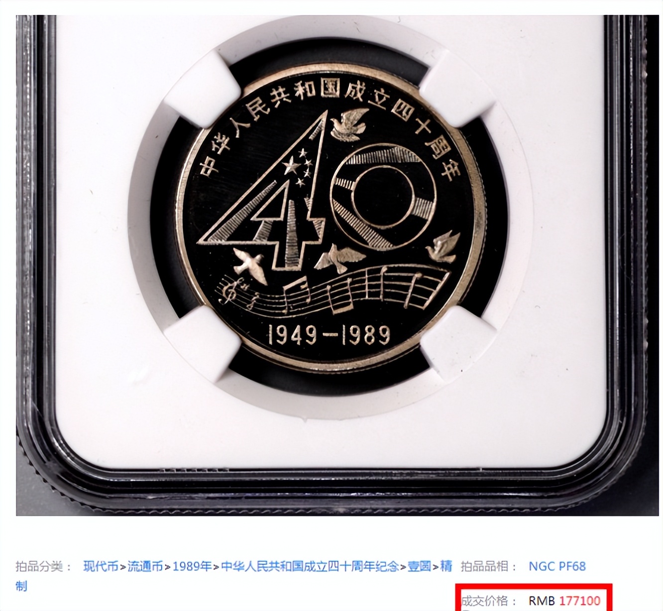 真正震撼市场的,还要数1989年建国40周年1元纪念币。很多人或许见过这款纪念币的流通版,但你知道精制版仅仅发行1000枚吗?如此稀少的数量,直接让它成为“币中王者”。在拍卖会上,一枚精制版的成交价高达17.71万元,这样的数字足以让人瞠目结舌。
