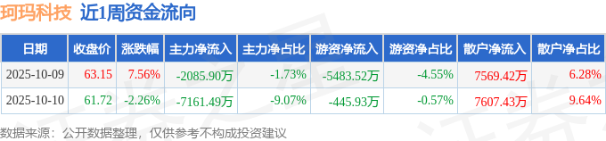 资金流向数据方面,本周珂玛科技主力资金合计净流出9247.4万元,游资资金合计净流出5929.45万元,散户资金合计净流入1.52亿元。本周资金流向一览见下表: