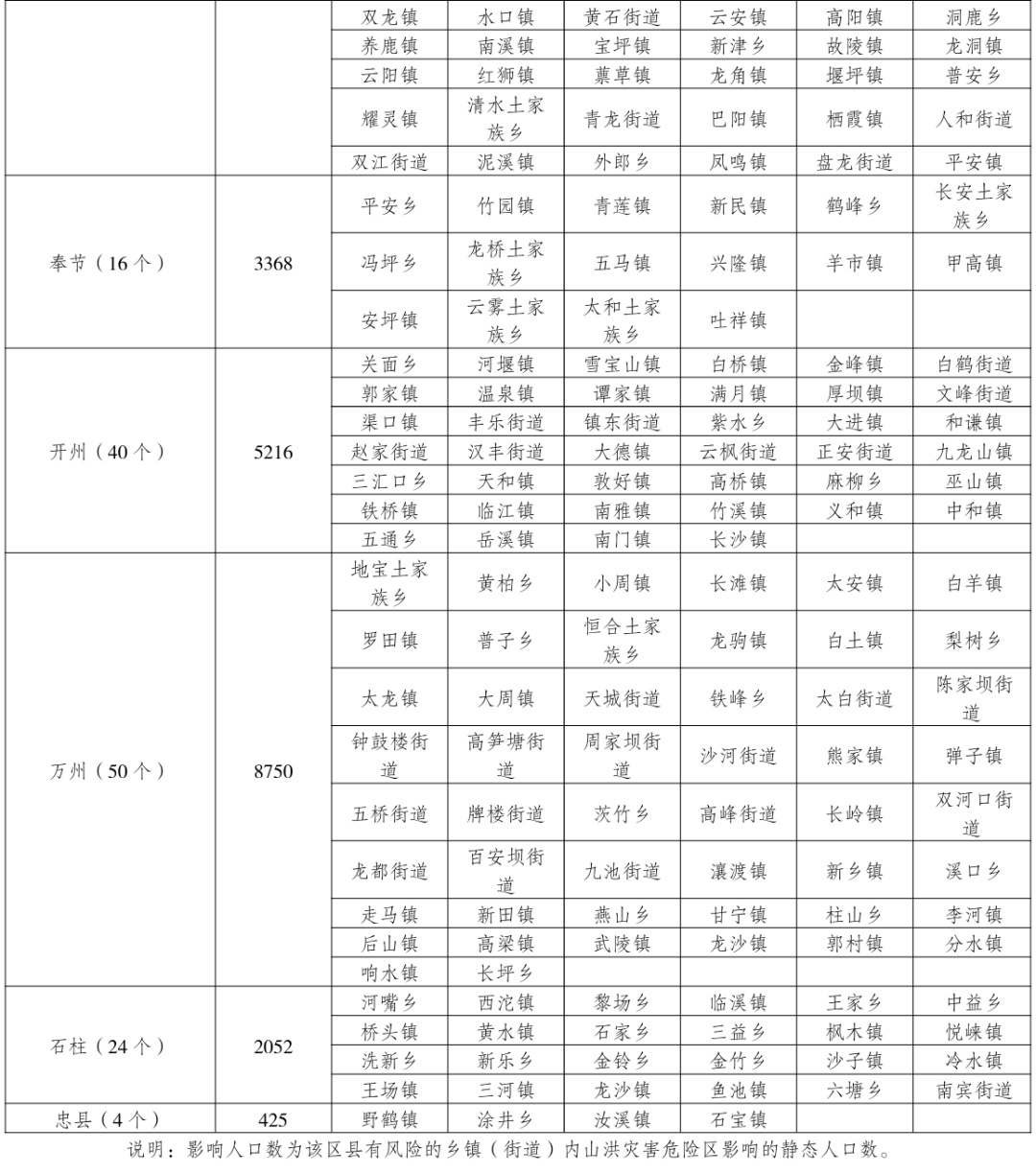 有一定风险:巫溪、城口、云阳、开州、万州、石柱、忠县。