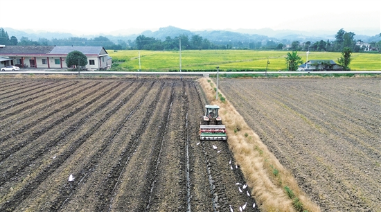 近日,在该县止戈安宁万亩核心示范区,一台台拖拉机牵引着播种机在地里来回穿梭,一粒粒油菜种子被均匀地播撒入土,奏响了“稻油轮作”的农忙新乐章。不远处,已播种的田块厢面平整,部分油菜种子已悄然萌芽。