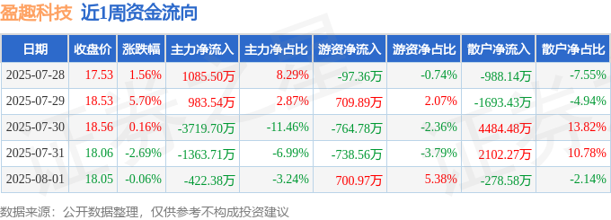 资金流向数据方面,本周盈趣科技主力资金合计净流出3436.75万元,游资资金合计净流出189.84万元,散户资金合计净流入3626.59万元。本周资金流向一览见下表: