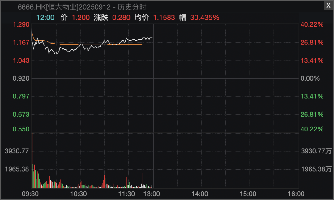 港股市场同样出现异动,停牌仅1日的恒大物业复牌后股价剧烈波动。早盘一度飙升42%创11个月新高,虽后市有所回落,但截至收盘仍保持31%的涨幅,成交量从停牌前的3128万港元激增至6.2亿港元。受此带动,恒生物业服务管理指数大涨3.2%,远洋服务、绿城服务等个股涨幅居前。
