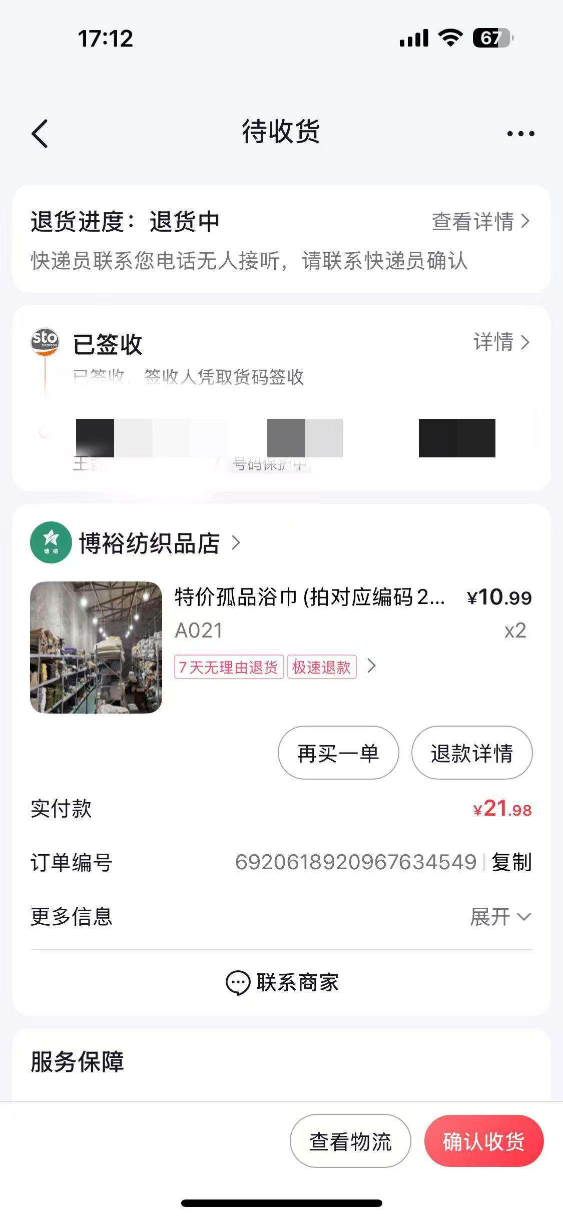 “医院的东西怎么能随便对外售卖?”王先生表示,看到标识后既困惑又担心,怀疑这些浴巾可能来自医院,存在卫生隐患,“夏天本来就是各类病菌高发期,万一有污染或病毒,谁来负责?”发现问题后,王先生立即联系博裕纺织品店客服,告知浴巾上有医院标识并要求处理。但商家表示浴巾是随机发货,“很正常”,并表示“爱要不要”,当王先生提出要投诉时,对方更是则表示:“赶紧去,不去我看不起你。”