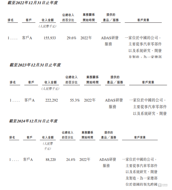 笔者注意到,文远知行正深陷“市场地位领先”与“经营业绩疲软”的强烈反差之中。尽管在2024年以城市道路L4级及以上自动驾驶收入计,其全球排名第二,占据21.8%的市场份额,且所处行业前景广阔,在高研发下,自身业绩却持续承压,2022年-2024年营收年均复合增长率低至-17.24%。特别要说明的是,作为长期贡献主要收入的客户A,其2024年销售金额同比锐减60.31%,收入占比骤降至24.4%,而2025年上半年,客户A更是彻底退出前五大客户名单。