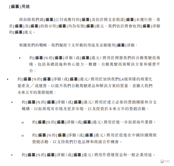 笔者注意到,文远知行此次港股IPO募资的目的主要是为了研发、加快L4车队的商业化量产或运营、营销、补充营运资金等,具体情况如下: