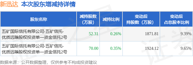 证券之星消息,10月14日新迅达发布公告《新迅达:关于公司持股5%以上股东减持计划期限届满暨实施情况的公告》,其股东五矿国际信托有限公司-五矿信托-优质远瞻股权投资单一资金信托2号于2025年8月21日至2025年8月22日间合计减持122.31万股,占公司目前总股本的0.6133%,变动期间该股股价上涨3.34%,截止8月22日收盘报14.23元。