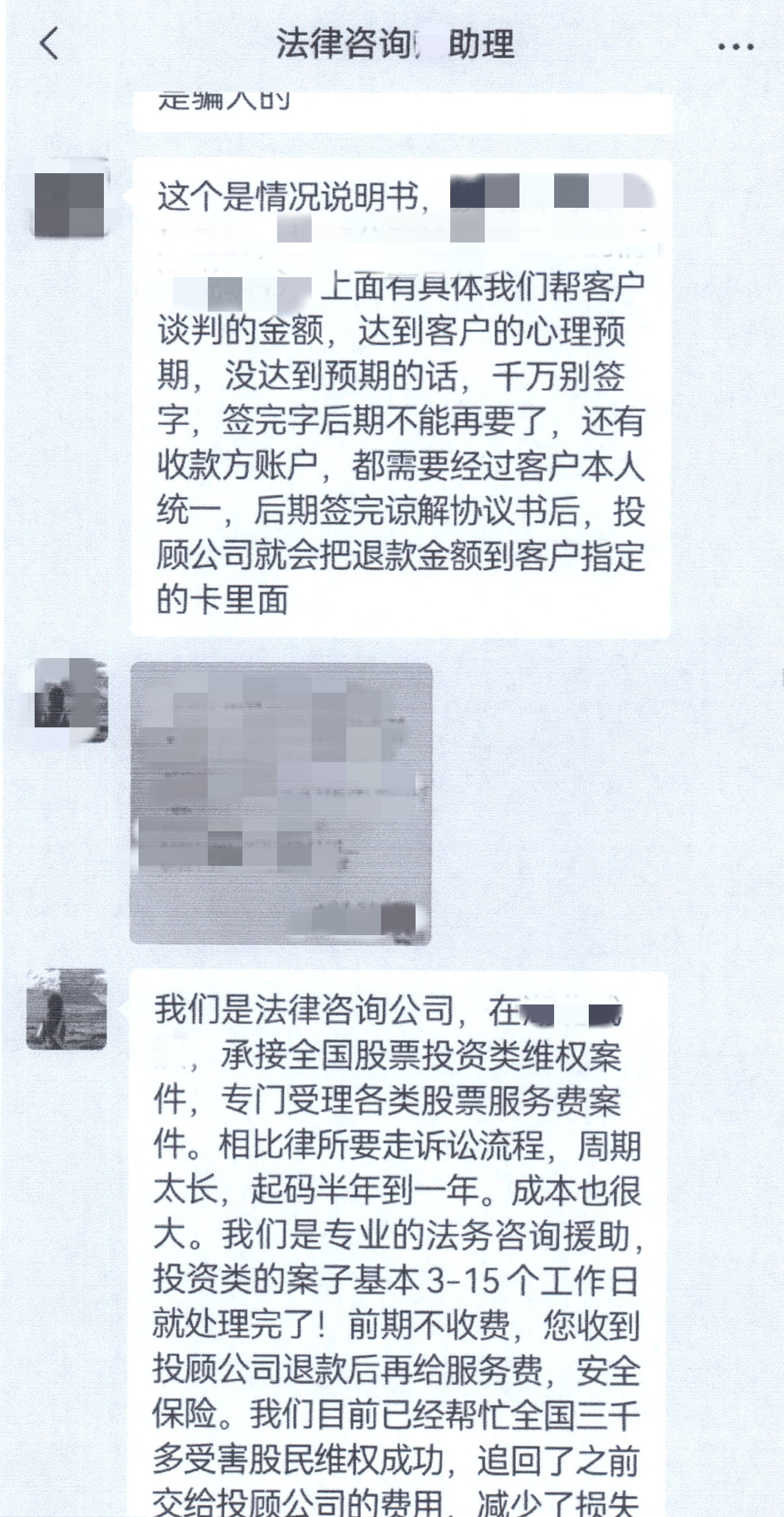但就在快一年后,万先生接到了一个自称专业从事法律咨询的人员电话,询问其是否购买了某证券投资咨询公司的产品。对方表示,其所在公司可以帮万先生申请退回购买服务的花销。