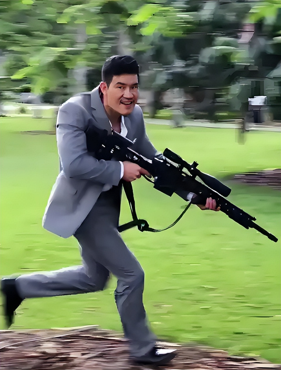 在《硬汉狙击》的拍摄阶段,谢孟伟持枪奔跑的一幕被网友拍下。