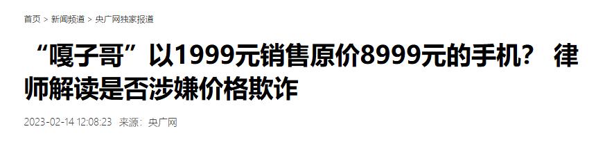 央广网|“嘎子哥”以1999元销售原价8999元的手机? 律师解读是否涉嫌价格欺诈